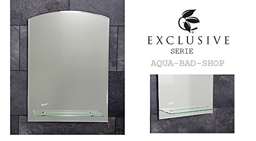 The mirror can only be attached to vertical. The mirror comes with a screw and wall plugs. Real Glass Tray inklussive. The mounting material is included. * Dimensions: Height: Approx. 70 cm, Width approx. 50 cm * Rectangular shape - Real glass shelf approx. 42 cm wide and 12 cm (5 inch) deep. This mirror They also have with light. Box Contents: * 1 x Mirror * 1x Shelf * + attachments
