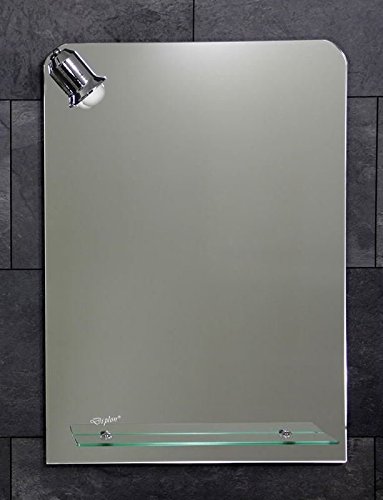 The mirror can only be attached to vertical. The mirror comes with a screw and wall plugs. Real Glass Tray inklussive. The mounting material is included. * Dimensions: Height: Approx. 70 cm, Width approx. 50 cm * Rectangular shape - Real glass shelf approx. 42 cm wide and 12 cm (5 inch) deep. This mirror They also have with light. Box Contents: * 1 x Mirror * 1x Shelf * + attachments