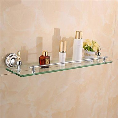 PRODUCT DESCRIPTIONS:Type:Bathroom Shelves,Style:Contemporary,Finish:Chrome,Material:Glass, Brass,Mount:Wall Mounted,Dimension:55x12x11.5cm(22x4.7x4.5inch),Net Weight (kg):1.7kg,Shipping Weight (kg):1.8kg,