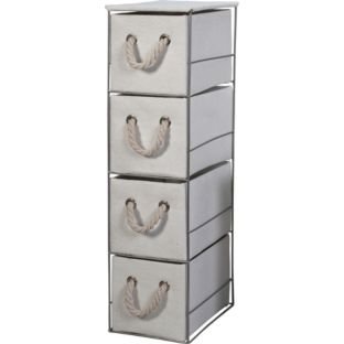 PRODUCT DESCRIPTIONS:White Tall Storage Tower. Self-assembly. Large drawer uni: 4 drawers. Size H65, W24, D18cm. Made from fabric. Large drawer unit: 4 drawers. Size H65, W24, D18cm. Self-assembly.