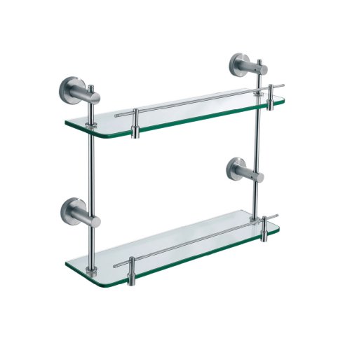 Kingsun Stainless Steel Holder Surface Finishing and Dual Tier Number of Tiers Bathroom Glass Shelves