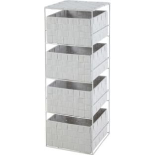 PRODUCT DESCRIPTIONS:This attractive 4 drawer storage unit is the perfect addition to any bathroom. Fabric frame. 100% polyester liner. Capacity 20 litres. Size H60, W22, D23. Minimal assembly.
