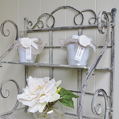 PRODUCT DESCRIPTIONS:Another one of my favourites! Antiqued finish grey wash colour. Pretty free standing metal scrolled detail rack with 2 folding shelves for storage. Has protective feet. This beautiful shelf would look stunning in your bathroom with your favourite toiletries displayed or in the kitchen for displaying items. Requires assembling - very easy to do. This shelf unit is in one piece - simply unfolds. Fixings and tool included. H 37cm x W 33cm x D19cm. Could be wall hung - no fixings or holes included.
