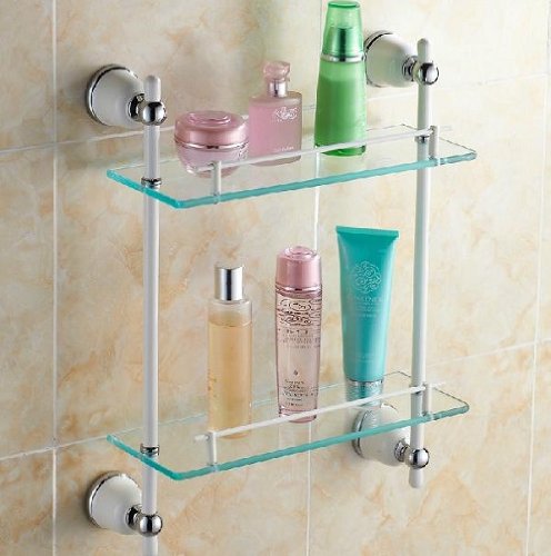 PRODUCT DESCRIPTIONS:Glass Shelf For Bathroom,Brass Made,in White+Chrome Finish
