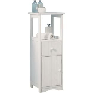 PRODUCT DESCRIPTIONS:For an elegant twist, update your bathroom with this convenient storage unit in elegant white with a tongue and groove design. Material: wood effect. 1 drawer. 1 door. Complete with fixtures and fittings. Size H79, W29, D28cm. Self-assembly.