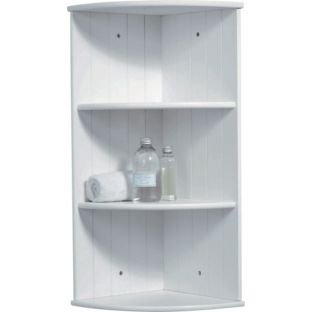 PRODUCT DESCRIPTIONS:This practical corner shelf unit for use on inner walls features a contemporary tongue and groove design. Wood effect finish. 3 shelves. Size H60, W26, D26cm. Complete with fixtures and fittings. Self-assembly.