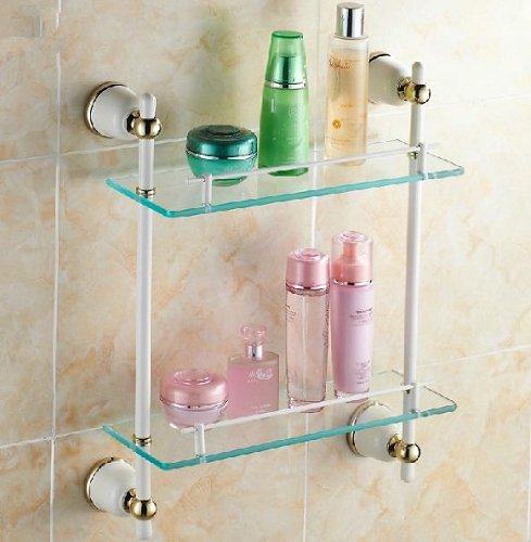 PRODUCT DESCRIPTIONS:Glass Shelf For Bathroom,Brass Made,in White+Gold Finish