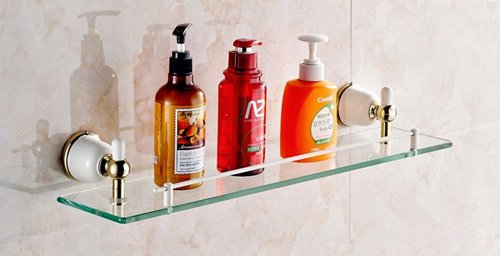 PRODUCT DESCRIPTIONS:Glass Shelf For Bathroom,Brass Made,in White+Gold Finish