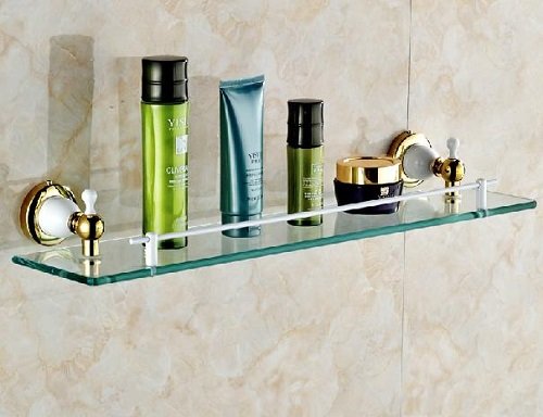 PRODUCT DESCRIPTIONS:Glass Shelf For Bathroom,Brass Made,in White+Gold Finish